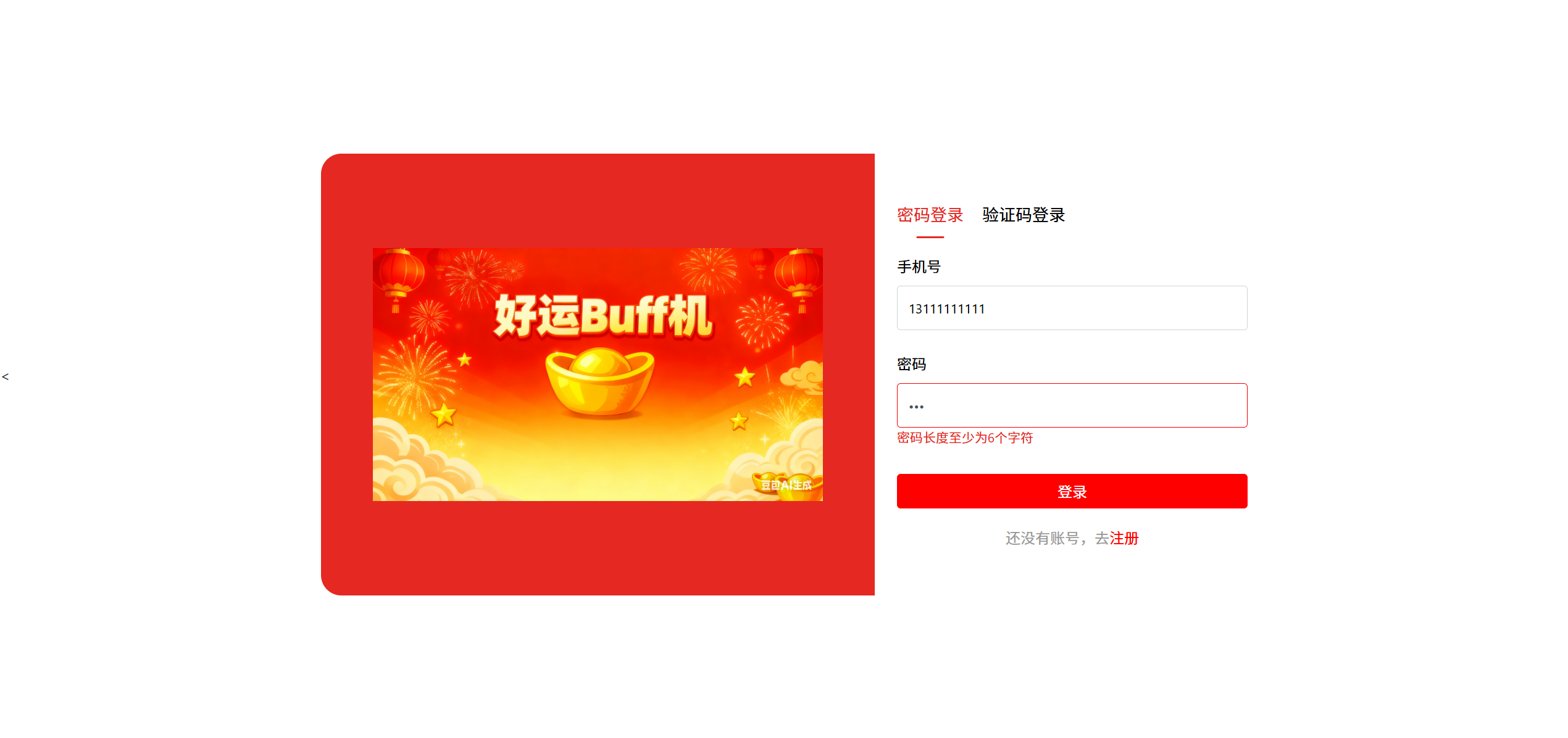 测试场景四:手机号正确,密码错误(密码格式错误)