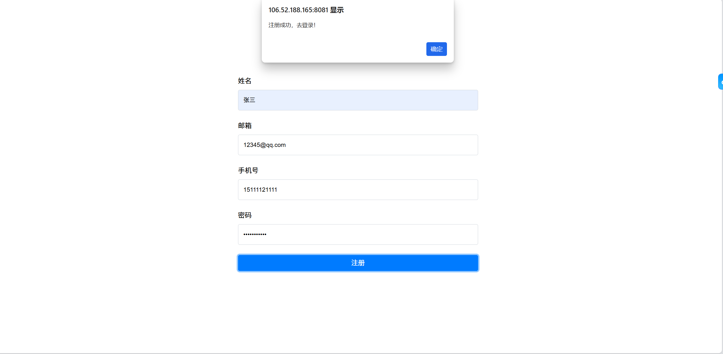 预测场景:弹窗"注册成功,点击确定",成功跳转登录页