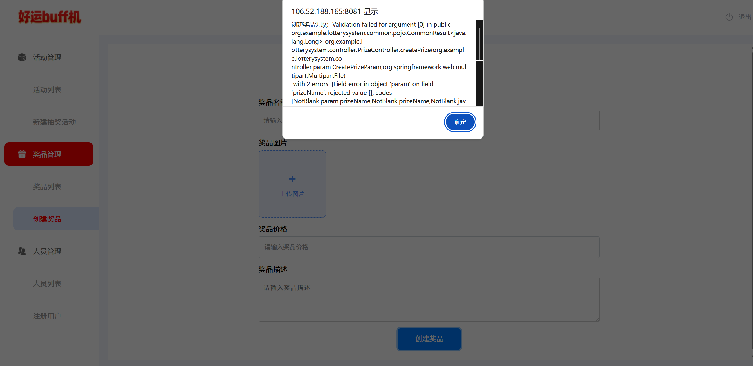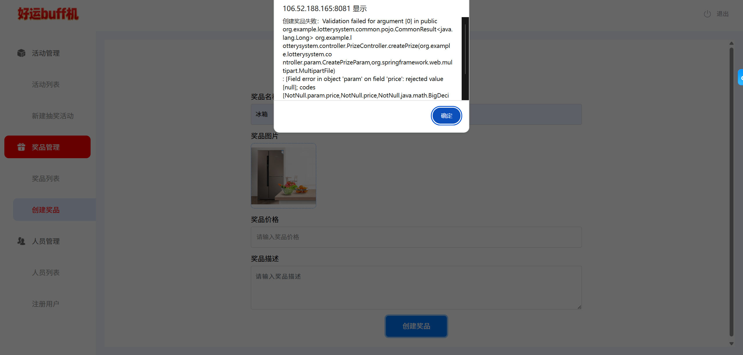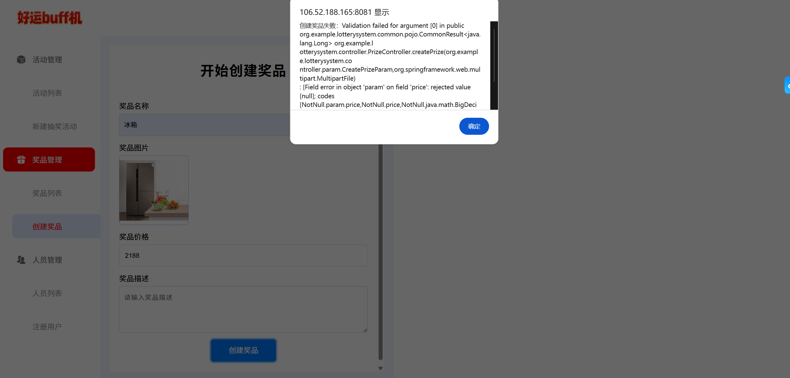预测场景:弹窗提醒"创建失败!活动关联奖品及人员数量设置异常"