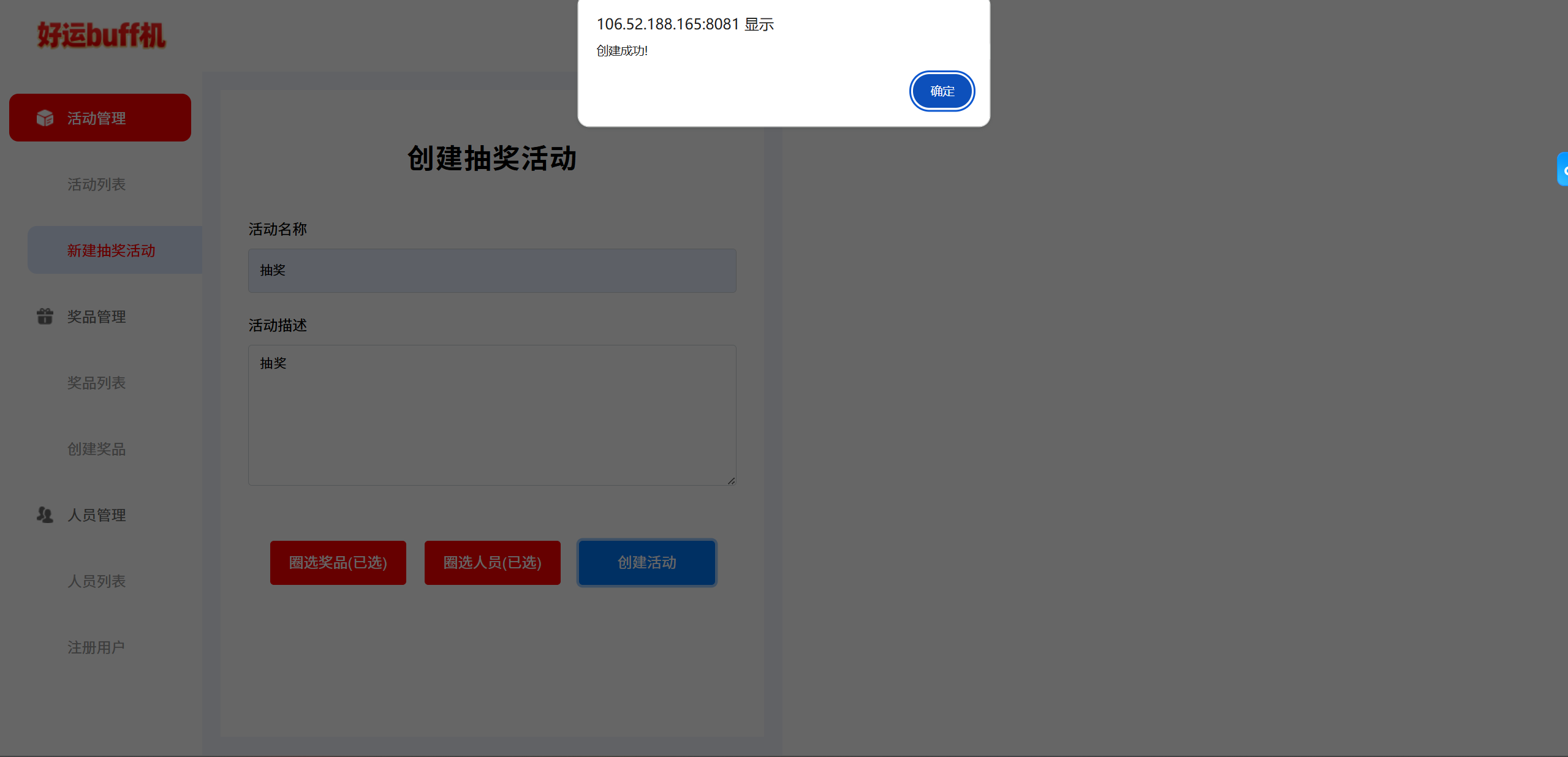 这是一款可供企业使用的抽奖平台,支持活动创建、人员管理、奖品分配、多轮抽奖流程及实时通知。系统可以承载大量的抽奖请求,保障数据一致性与高并发性能,满足企业营销活动需求。