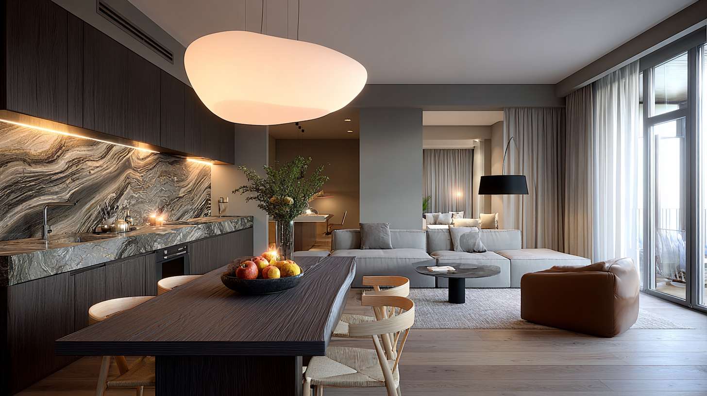 针对业主普遍面临的"风格与实用失衡、设计落地脱节、预算管控模糊"等痛点,EICO生活经从沟通阶段就建立了高效需求对齐机制:提前收集房屋基础、居住人群、装修进度等信息,重点明确现代简约风格的核心需求------拒绝复杂造型,主打"松弛感"简约,融入木、石等自然元素避免冰冷,同时紧扣"隐形收纳""无主灯设计"等现代简约核心要点,从根源上减少后续调整,确保设计贴合居住预期。