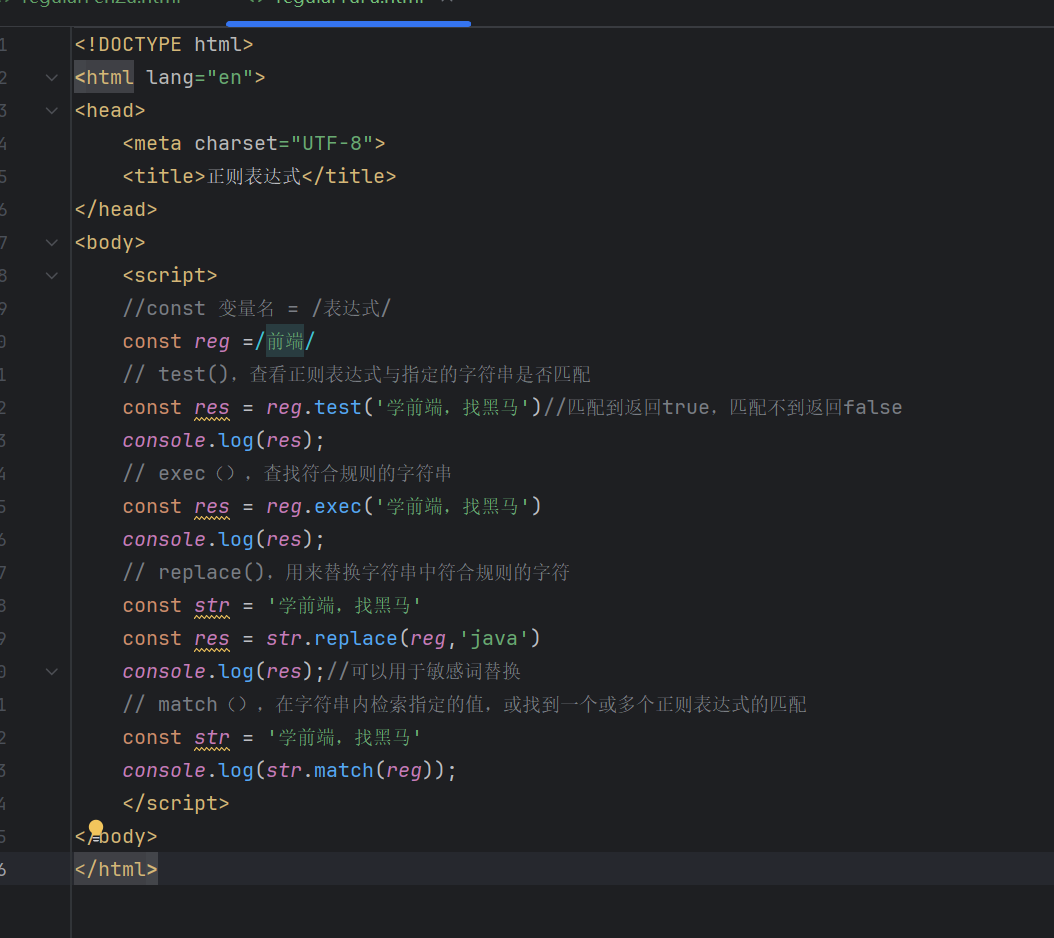 const res = reg.test('学前端,找黑马')//匹配到返回true,匹配不到返回false