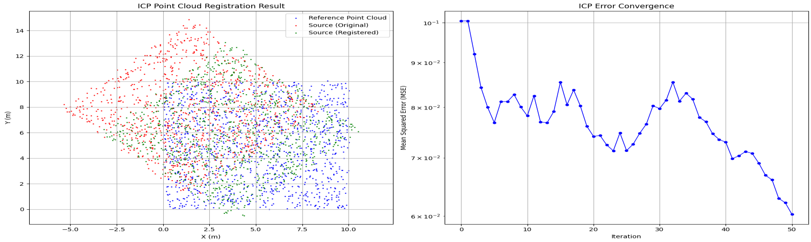 - 可视化:同时展示点云配准效果和误差收敛曲线,直观验证算法有效性。