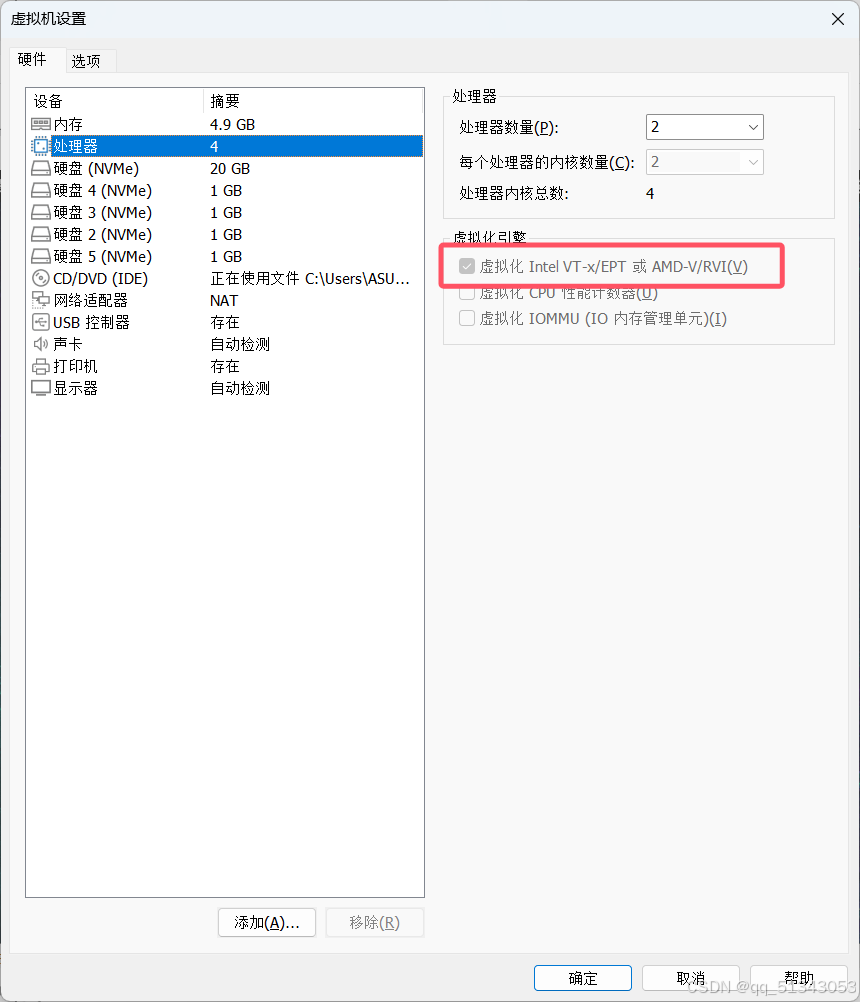 在虚拟机设置勾选红框选项