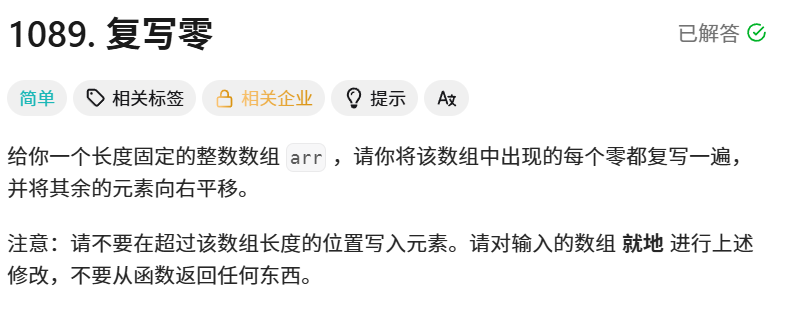 - 但是 【从后往前】复写的时候,我们需要找到 【最后一个复写的数】,因此我们的大体流程分两步:1.先找到最后一个复写的数;2.然后从后往前进行复写操作