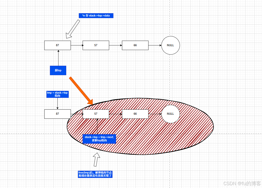 2、tmp指向栈顶,将栈顶更新为原栈顶的后一个元素