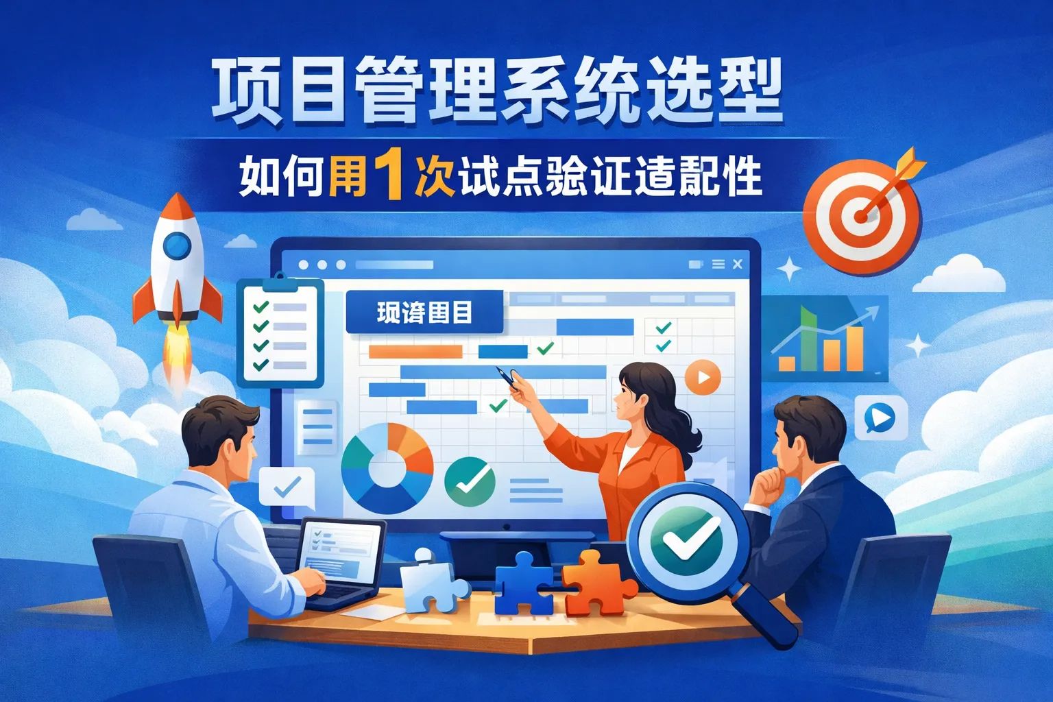 用一次试点验证项目管理系统的适配性,应遵循"明确假设---可测量指标---代表性团队---有限时长"的闭环。选择一个具有代表性的项目或产品线,定义目标与成功阈值,在4---6周内完成配置、培训与数据采集,并通过量化KPI与用户体验双重评估对比基线与试点表现,最终形成可扩展或退出的清晰决策,避免大投入后才发现系统不匹配。