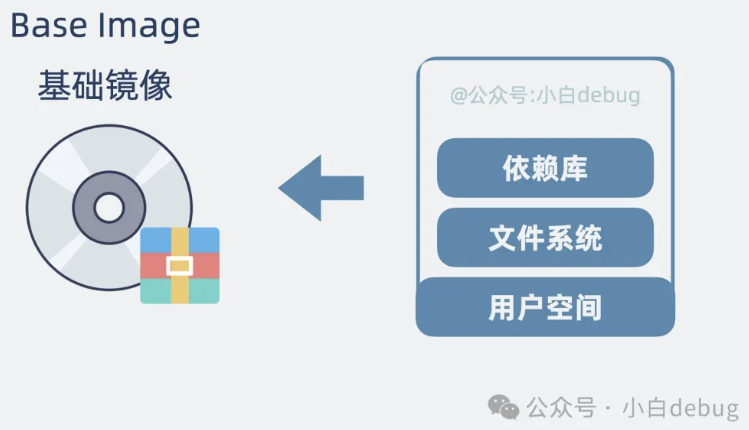 其次就是统一程序语言 依赖,比如要跑 python 应用,你得装个 python 解释器,要跑个 java 应用,得装个 JVM。选中一个基础操作系统和语言后,我们将它们对应的文件系统,依赖库,配置等放一起打包成一个类似压缩包的文件,这就是所谓的基础镜像(Base Image)。