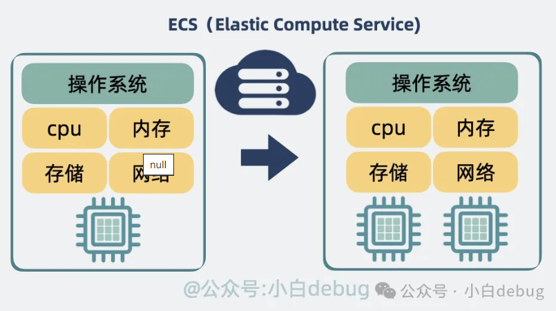 但传统 VPS 有个缺点,不支持用户自主升降级,它的资源是预先分配的,不易动态调整。举个例子,假设你买了 1c1g 的服务器,想在页面上点点两下升级成 2c2g,这在传统 VPS 里是不支持的。如果给 VPS 加入自主升降级的功能,那它就成了 ECS(Elastic Compute Service,弹性计算服务)