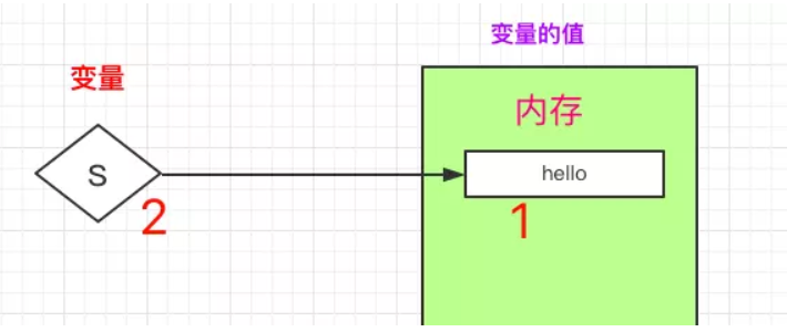 hello这个字符串对象会在内存中先被创建,之后再把变量名s分配给这个对象