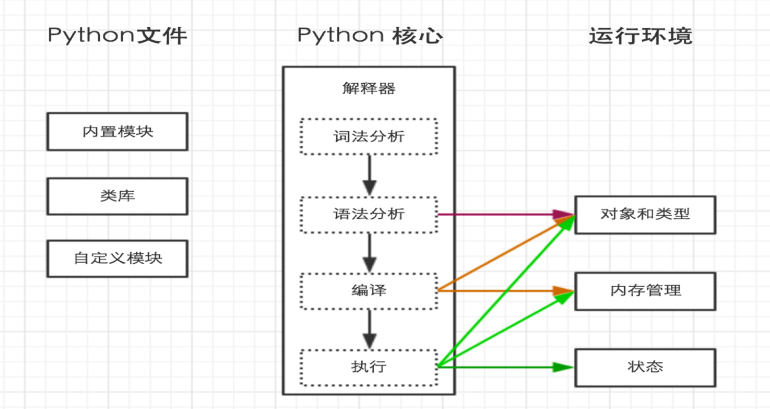 1.CPython 当我们从Python官方网站下载并安装好Python 后,我们就直接获得了一个官方版本的解释器:CPython。这个解释器是用C语言开发的,所以叫CPython。在命令行下运行