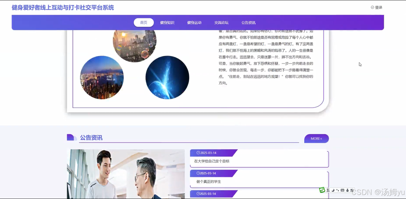 SpringBoot作为一款轻量级的Java开发框架,具有快速开发、易于部署、集成度高等优势,能够高效构建稳定可靠的Web应用程序。基于SpringBoot开发健身爱好者打卡与互动交流系统,不仅可以为健身爱好者提供便捷的打卡记录功能,帮助他们科学管理健身计划,还能搭建一个互动交流的社区平台,促进健身者之间的沟通与合作,营造积极向上的健身氛围,推动健身行业的健康发展。因此,开展该系统的研究具有重要的现实意义。
