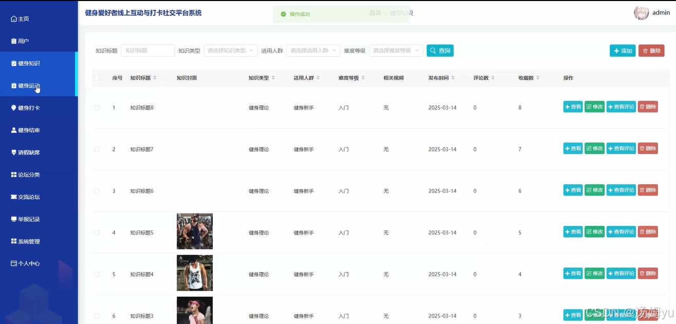 对于健身爱好者而言,该系统提供了便捷的打卡记录工具,能精准记录每次健身的时间、项目、强度等信息,帮助他们清晰了解自己的健身历程和进步情况,从而合理调整健身计划,提高健身效果。互动交流社区则为他们搭建了分享经验、交流心得、互相鼓励的平台,解决了传统健身模式下交流匮乏的问题,增强健身的趣味性和持续性。