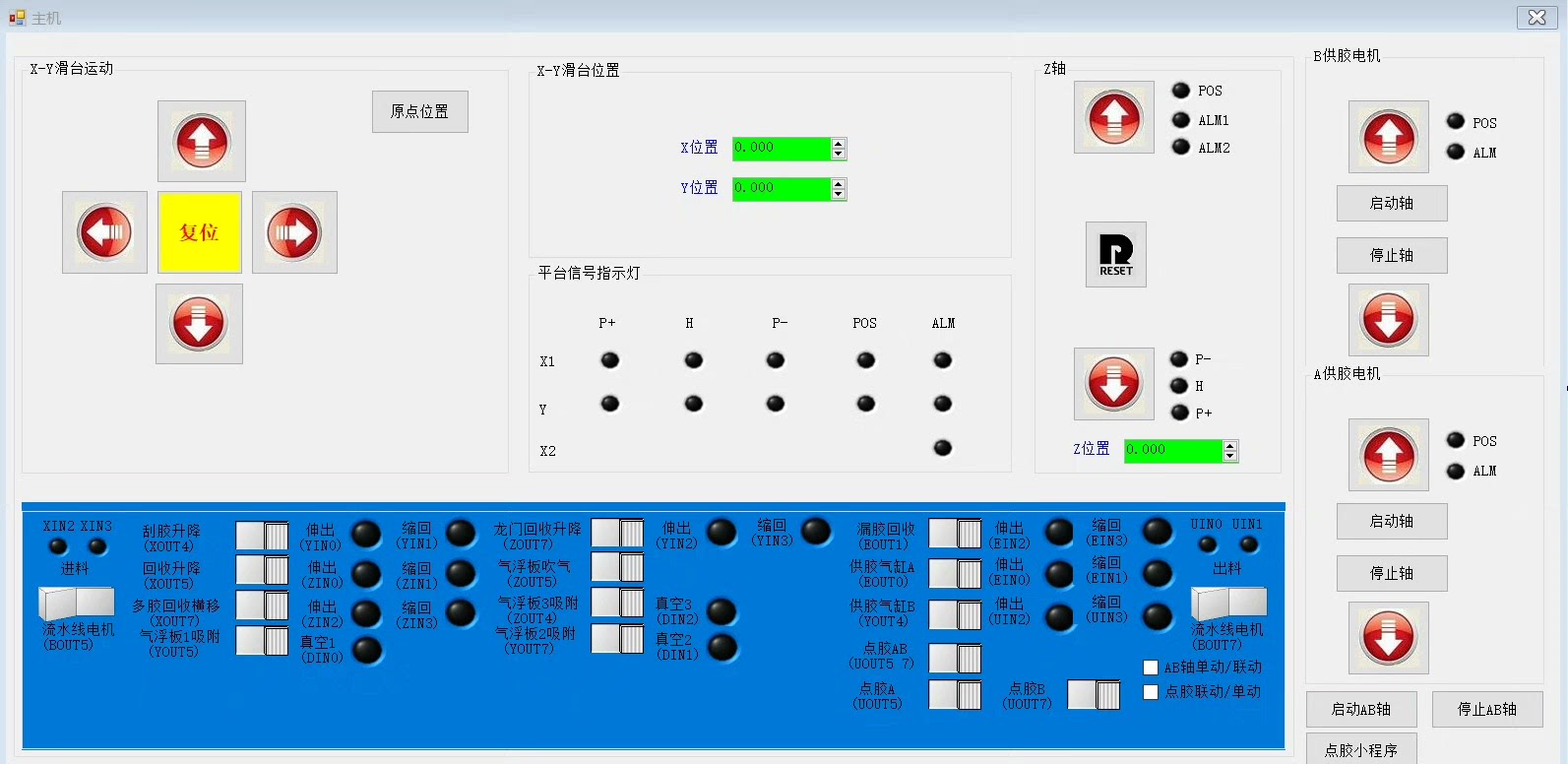 AB胶刮胶机 1、上位机C#编写; 2、研华运动控制卡; 3、研华运动控制卡龙门功能和插补功能; 4、板卡项目很好的借鉴程序;
