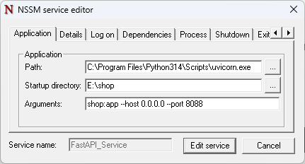 nssm edit FastAPI_Service