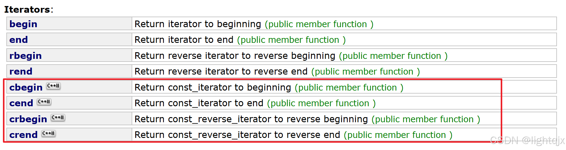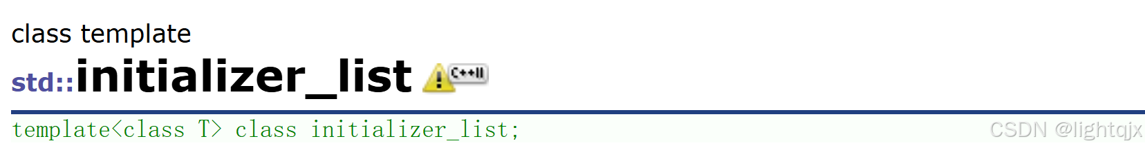 std::initializer_list是C++11才增加的一个类型,文档链接:initializer_list - C++ Reference 如图所示: