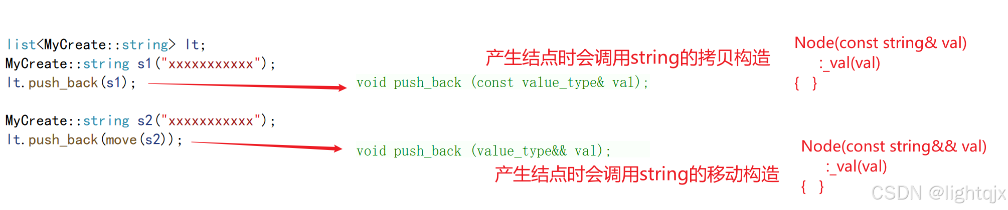 在 C++11 之前,我们通常使用 push_back 等接口向容器添加对象,但这种方法只能通过传递对象来添加对象,如图所示: