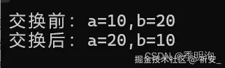 printf("交换后:a=%d,b=%d\n", a, b);