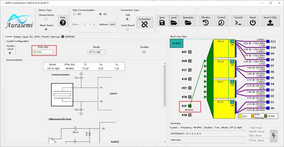 AU5615需要使用时钟配置软件进行配置时钟,最终输出相应的寄存器值。