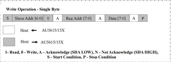 AU5615的地址高4bit为0110,低4bit为10{SDO}{CSB},需要根据实际的硬件连线来确定。