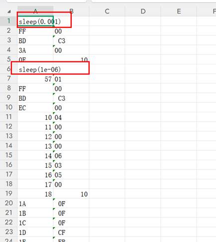 导出的csv包含sleep部分,代表着延时等待。在执行时需要延时对应的时间在发送下一个命令