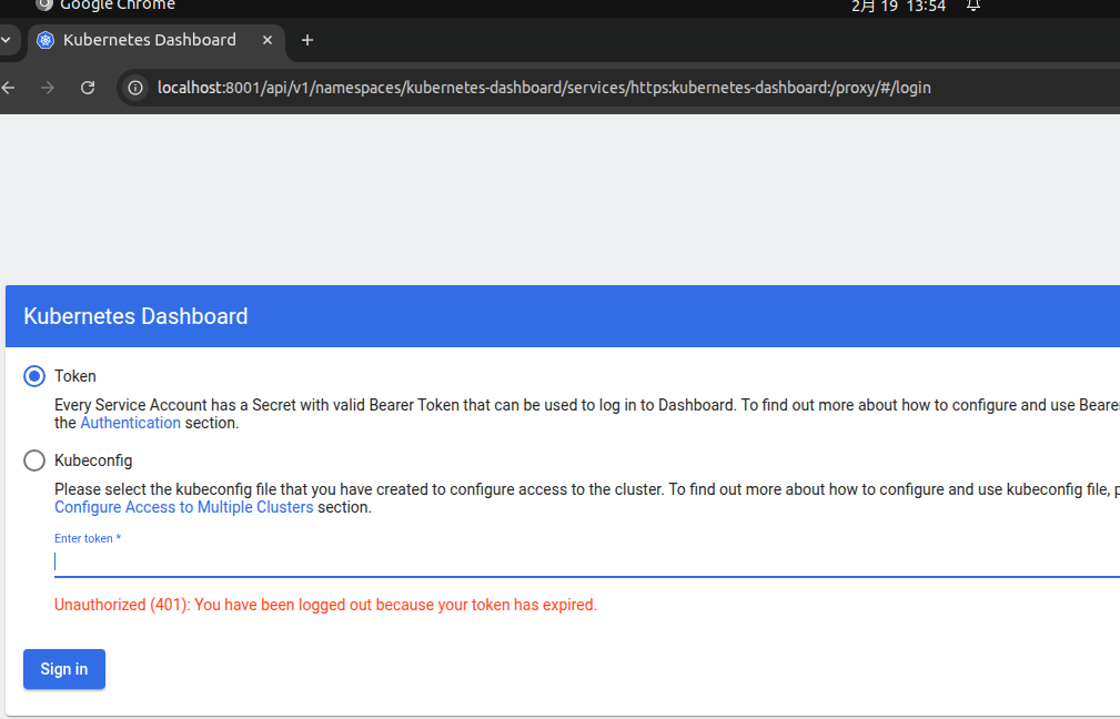 再次访问 http://localhost:8001/api/v1/namespaces/kubernetes-dashboard/services/https:kubernetes-dashboard:/proxy/,即可正常显示登录界面。
