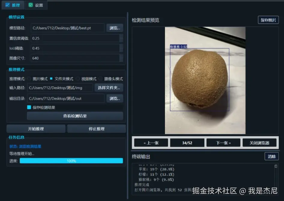本文从工程化与产品化的视角,系统讲解了一个基于 YOLOv8 的多水果种类智能识别系统的完整实现路径。通过将目标检测算法、统一推理逻辑与 PyQt5 图形界面进行解耦设计,项目不仅实现了对图片、视频和实时摄像头的高效识别,也真正完成了从模型训练到可交互应用的落地闭环。实践表明,YOLOv8 在多类别水果识别场景下兼顾了精度与实时性,而图形化封装显著降低了算法使用门槛,使系统具备良好的复用性与扩展性。整体方案对希望将计算机视觉技术应用于农业、零售或工业场景的开发者而言,具有明确的参考价值与实践意义。