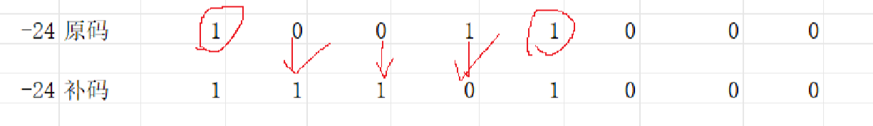 在这里补充一个小技巧,已知x的原码,求x的补码,如果这个x是负数的一个情况下,把x原码最右边的一个1前面一直到符号位(不含符号位)直接按位取反。不过还是主要要记住取反+1这个最基础的原理。