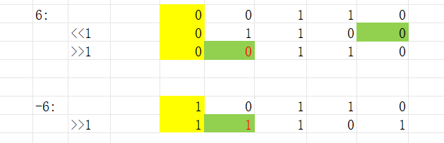 算术移位,符号位是不变的,只对数值位进行移动。比如说有有符号数6,固定5位,对其进行算术移位。
