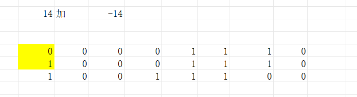 从这里可以看出原码的加减比较复杂,而且如果把符号位带进去计算会出问题,比如14+(-14),如果代入符号位进去算,如下会出现问题。