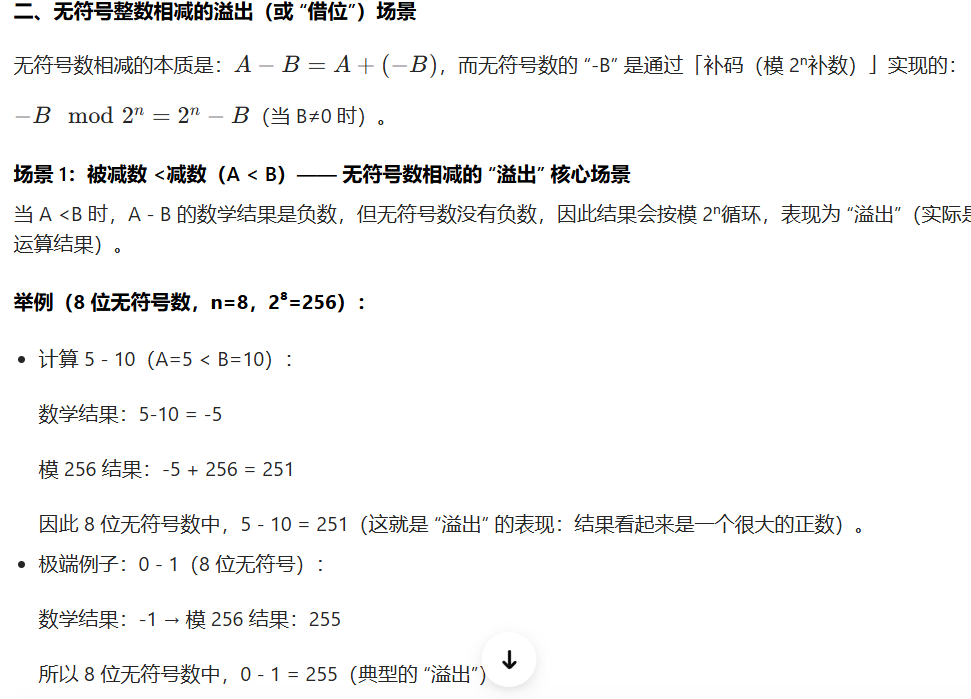 两个正数相减:在大多数现代计算机系统中,整数运算(包括相减)是在固定宽度的寄存器或内存中进行的,这意味着它们有一个上限和下限。当执行两个正数相减时,如果结果超出了这个范围(即溢出),那么实际存储的值将是一个意外的、通常是错误的值。