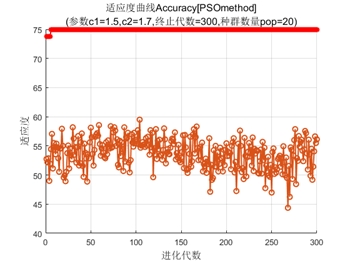 psosvmfitness,它接收参数params(包含C和G)、特征数据x和标签数据y。在函数内构建 LIBSVM 命令并通过svmtrain获得交叉验证准确率,取其相反数作为适应度,因为我们要最小化适应度来找到最优参数。 - 设置粒子群优化的参数,如粒子数量