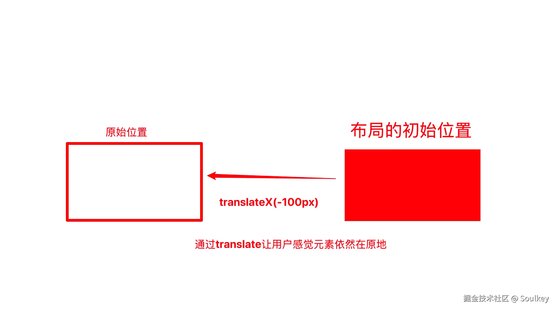 因此用户打开浏览器看到的的方块依然在原地,其实已经经历了 位置左移------》translate回到原地,两个操作