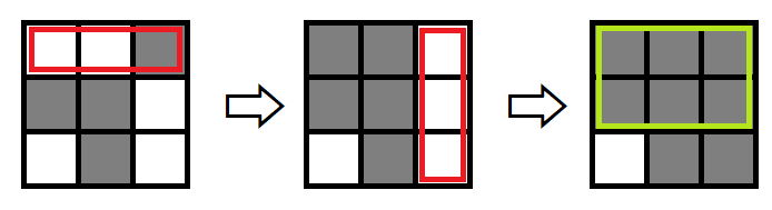 在操作结束后,Sunnuke 君会选择网格中的一个长方形。此时,所选长方形中的所有格子必须都是黑色。