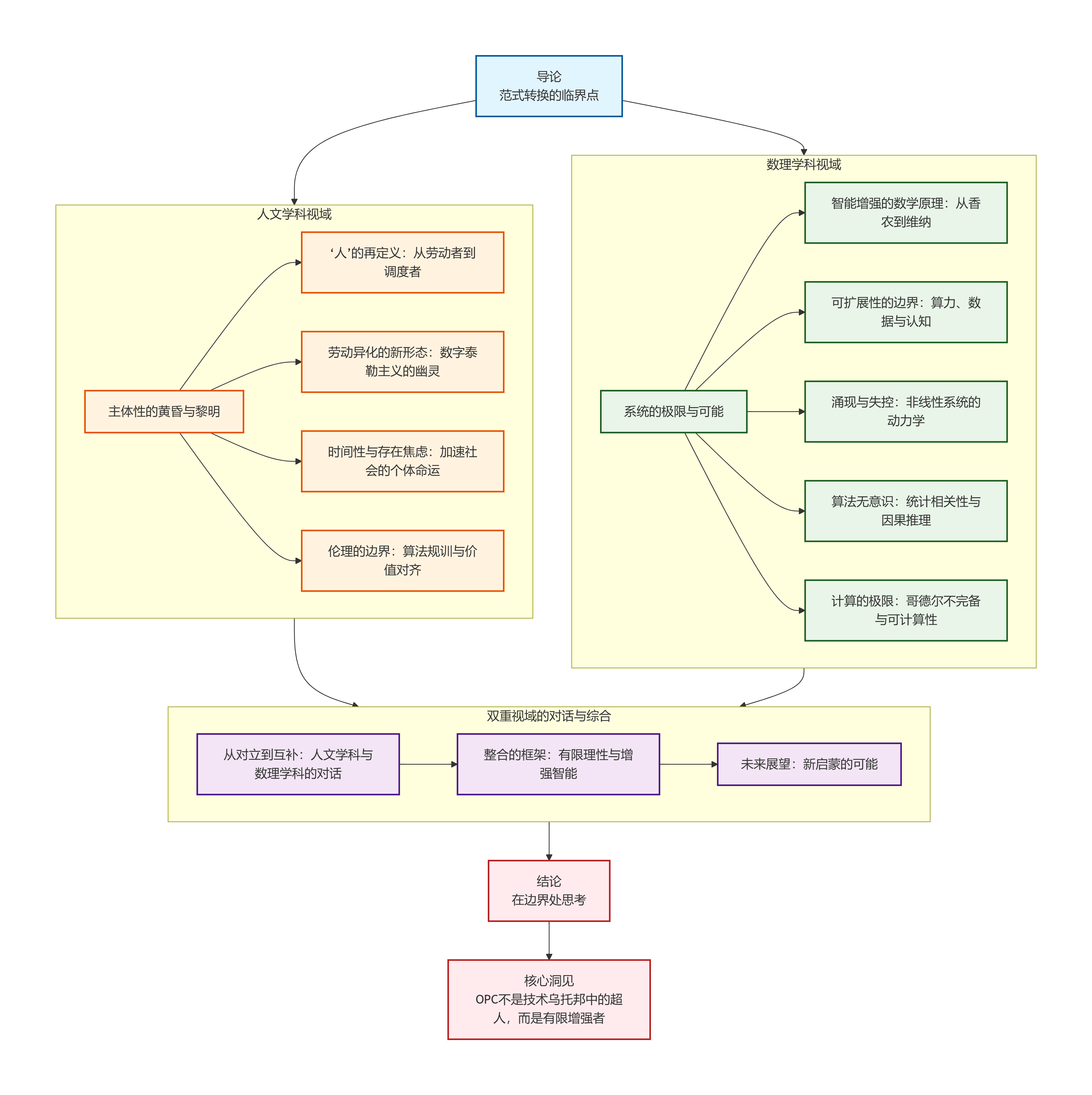 人文学科与数理学科对OPC的审视呈现出鲜明的对比:人文学科关注意义、价值、主体性的危机;数理学科关注系统、算法、可扩展性的边界。这两种视域看似对立,实则构成理解OPC现象的互补维度。