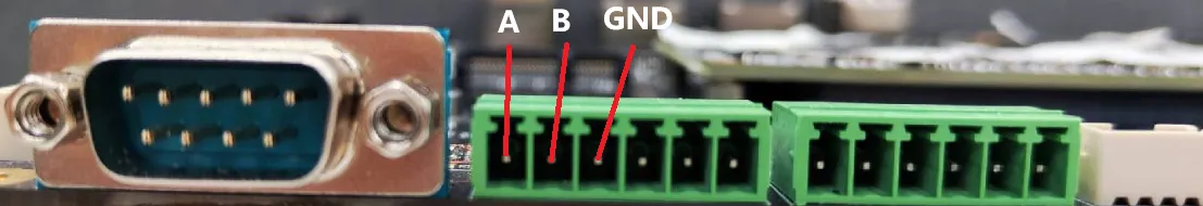 开发板上共有两个RS485接口,分别对应UART7,UART8。其中对应UART7的接口接线示意图如下: