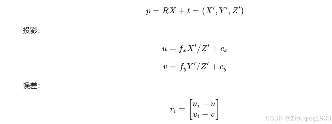 我们要优化 姿态 (R,t),使重投影误差最小: