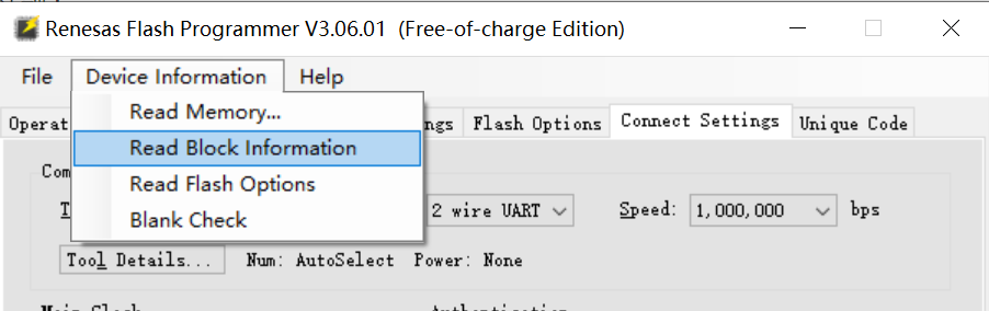 - 点击菜单栏的Device Information,选择Read Memory选项