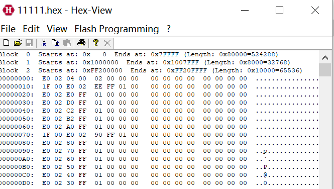 从HexView可以查看到,一共有三段分别是CodeFlash,DataFlash以及UserBootArea。