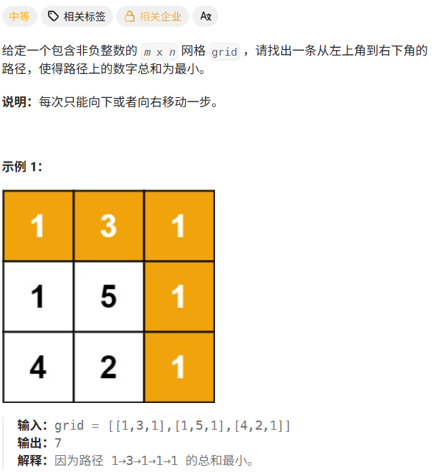int minPathSum(int** grid, int gridSize, int* gridColSize)