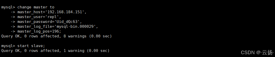 GRANT REPLICATION SLAVE ON *.* TO 'repl'@'192.168.184.%';