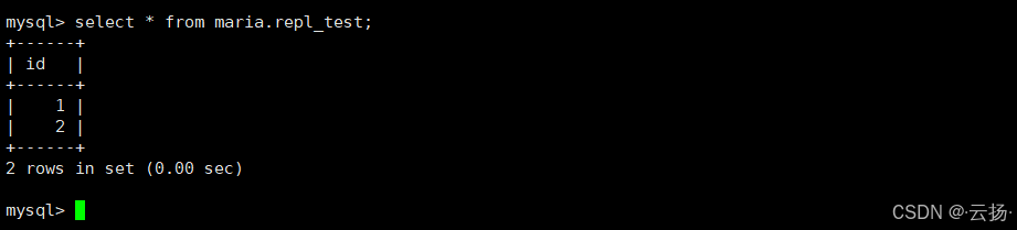-- 从库查询验证(应返回 id=1 和 id=2)