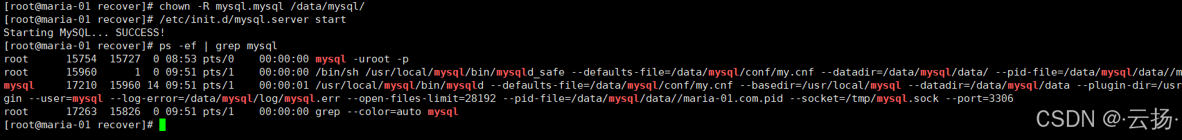 chown -R mysql:mysql,否则 MySQL 启动报错。 -