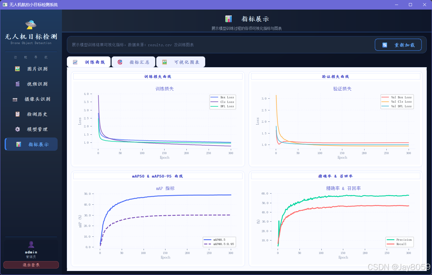 本项目针对无人机航拍场景下的小目标检测问题,基于 YOLO11 系列模型,在 VisDrone 2019 数据集上进行训练与优化,并提供了完整的检测系统桌面应用,支持图片、视频、摄像头的实时检测与训练指标可视化。