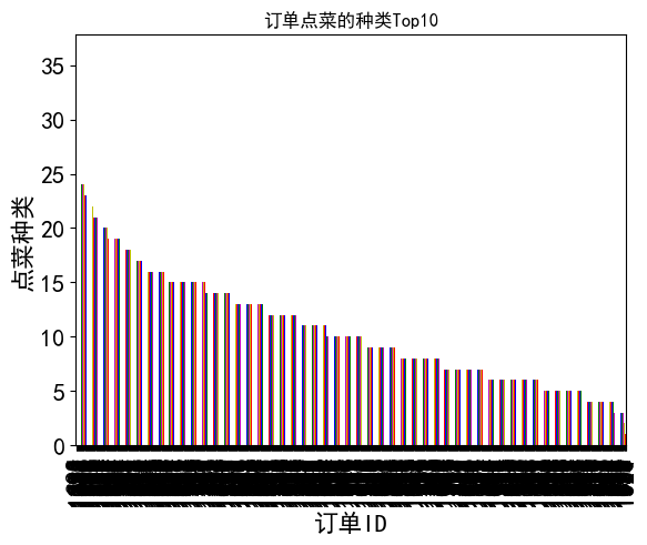 plt.title('订单ID点菜数量Top10')