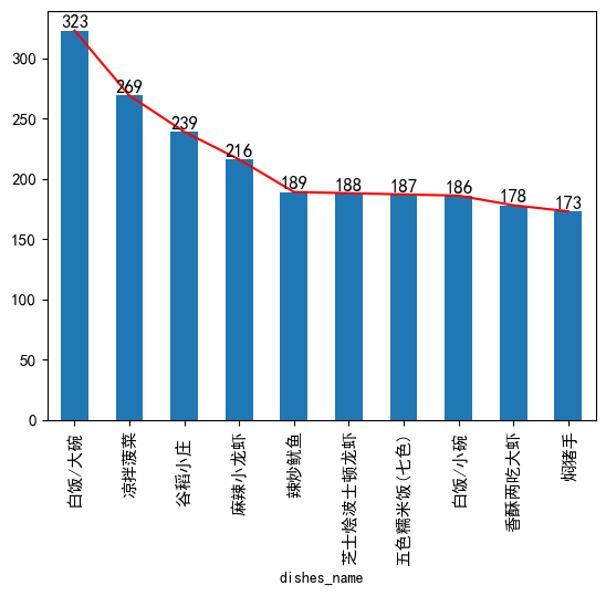 #频数统计,什么菜最受欢迎(对菜名进行频数统计,取最大前10名)