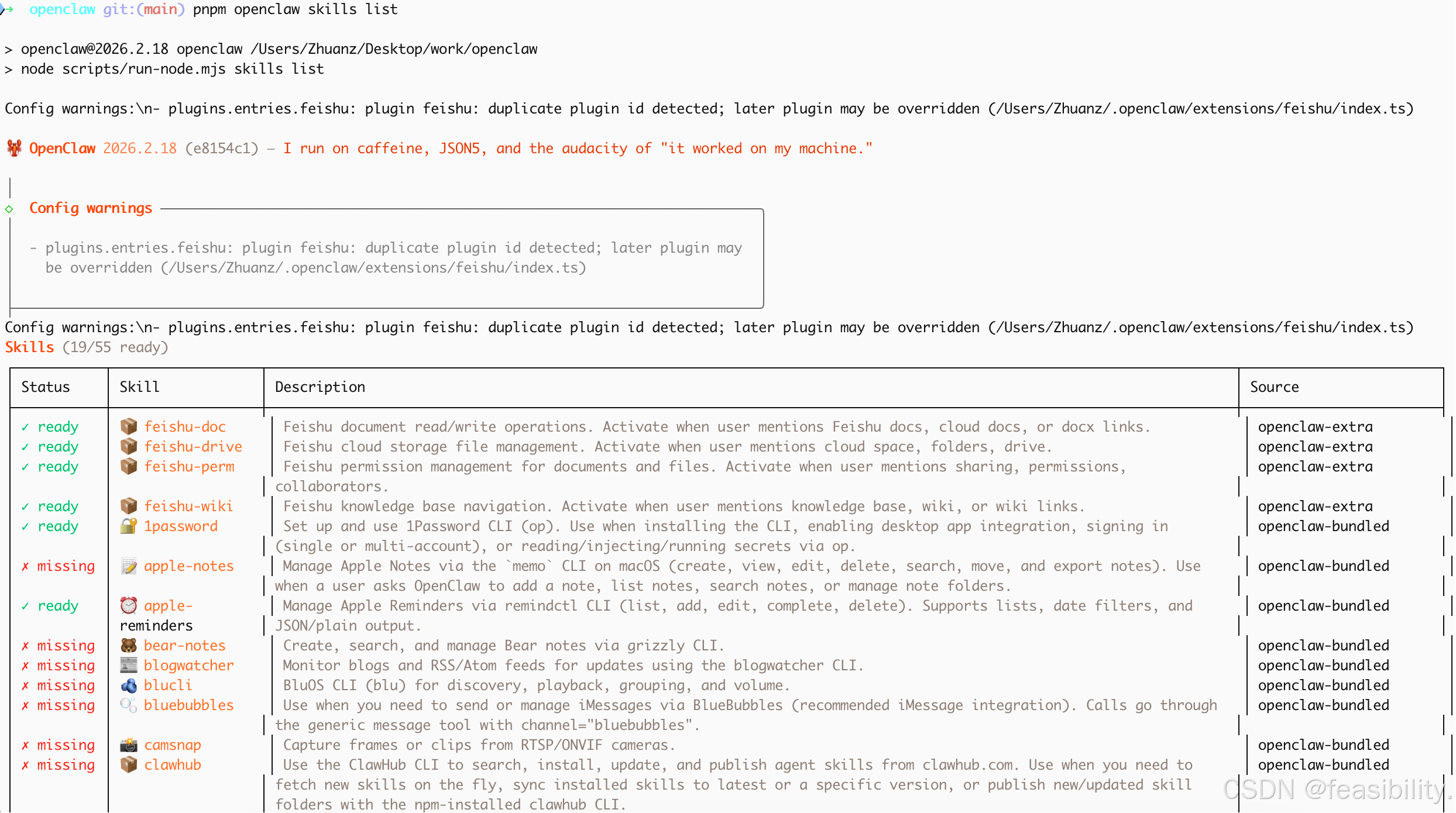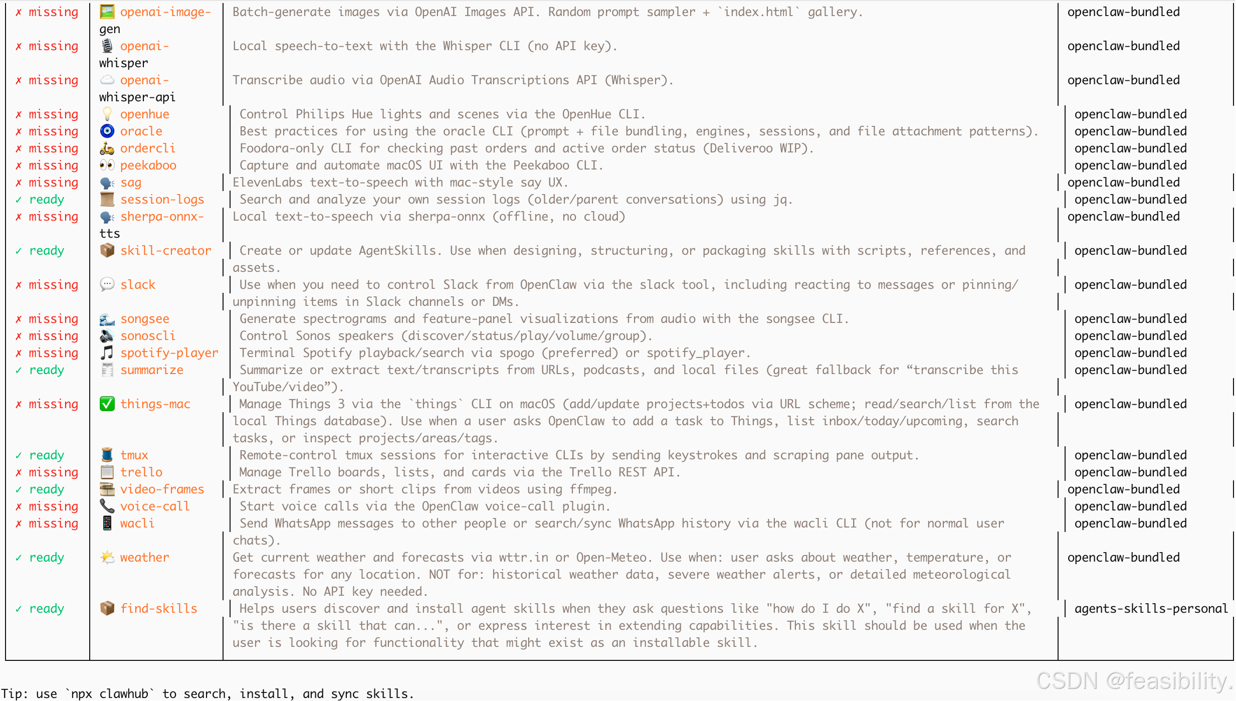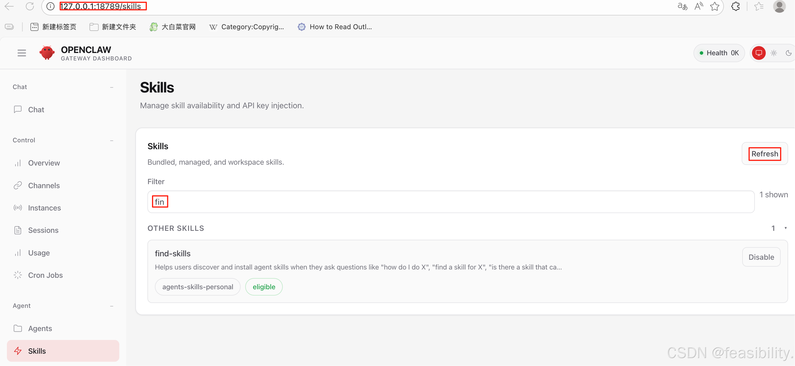 可以打开网站或命令行pnpm openclaw skills list验证find-skills是否安装