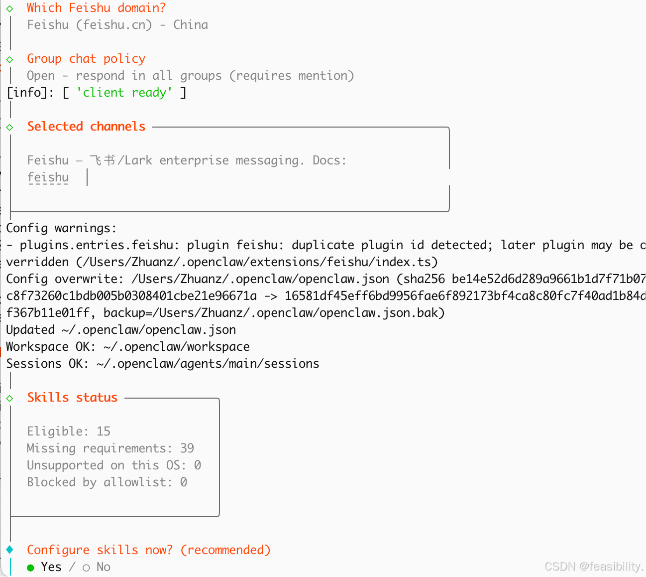 建议: 刚入门先 Skip for now,不影响核心功能。等熟悉后再根据实际需求开启,尤其是 session-memory 对长期对话体验提升明显。