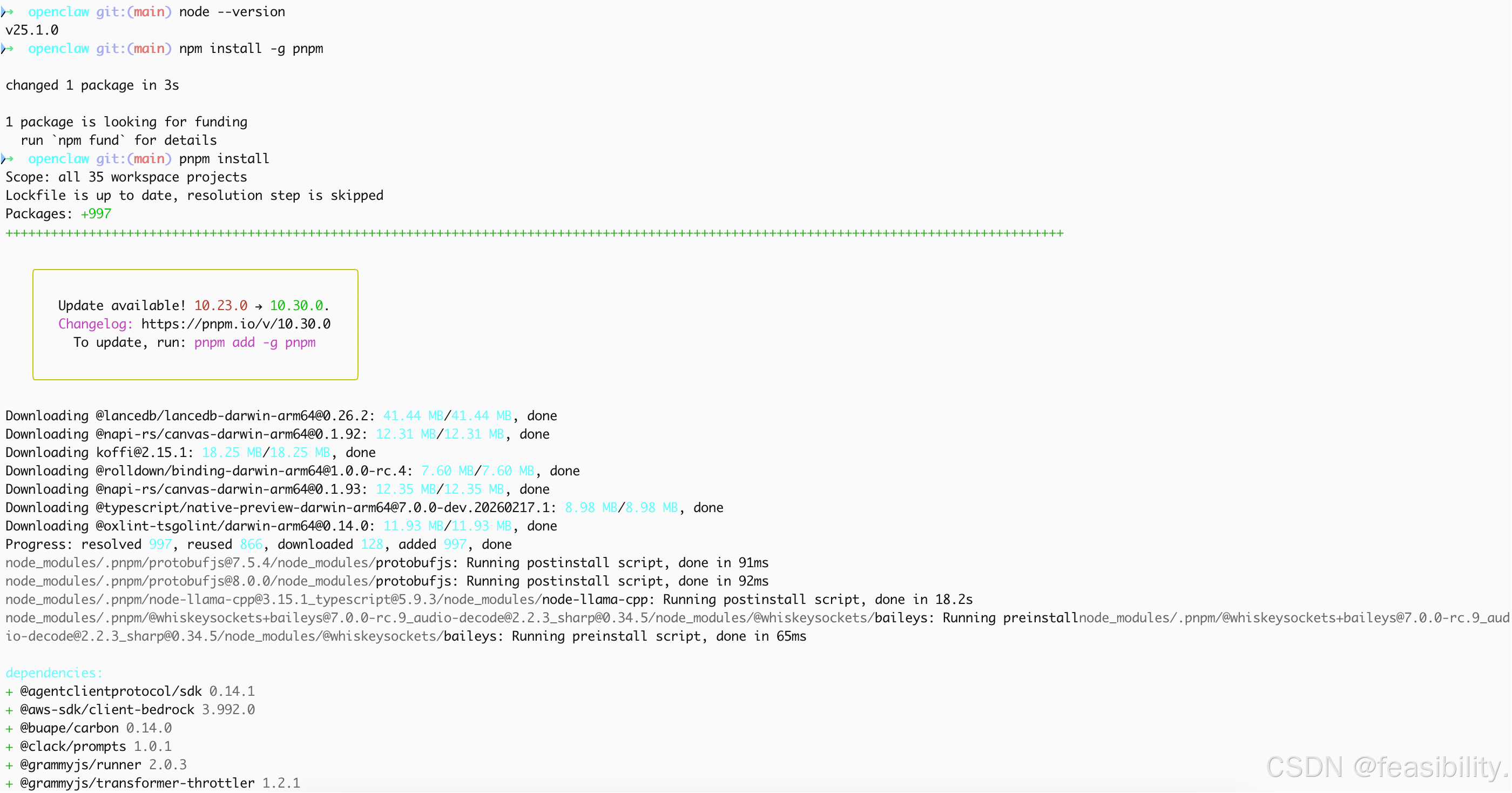 执行node --version看看node的版本是否大于等于22(没有node.js需自行安装),再执行npm install -g pnpm安装作为包管理器,并执行pnpm install安装依赖