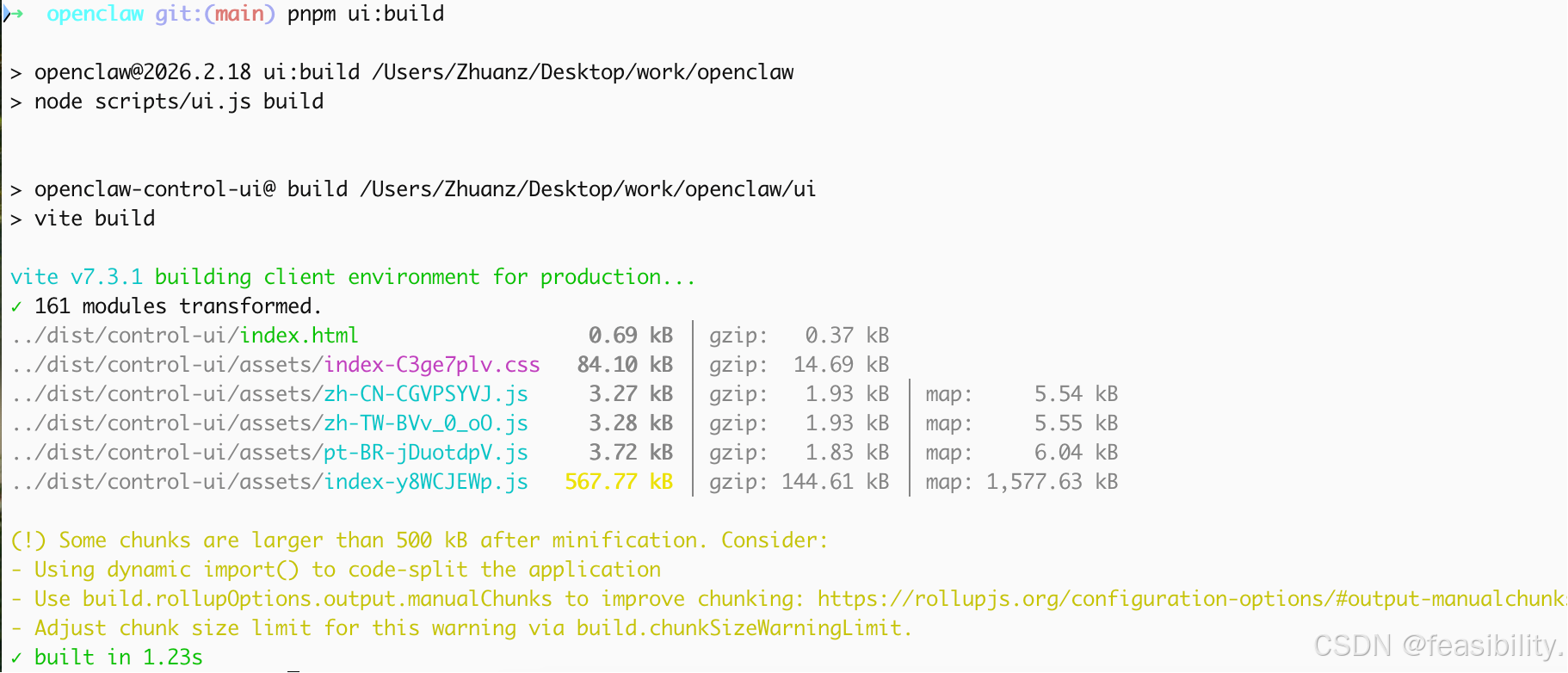 首次执行pnpm ui:build构建 Web UI(会先安装 ui/ 目录的依赖)